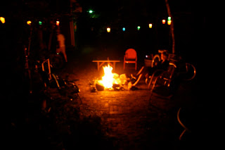 Curry come dinner, all apple slices and sweet potato. Vodka espresso evening; sit round a table of rainbow chairs and a bonfire. Drink till it becomes a good idea to pull guitars out, shout mindless absinthe lyrics and strum the g chord.